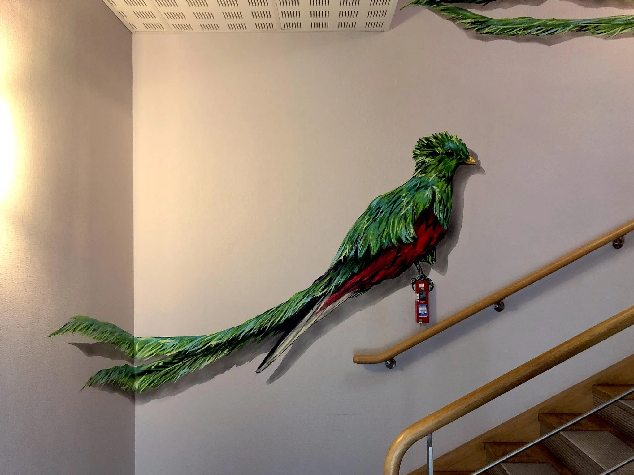 Après une tortue en février, A-MO est venu ce mois-ci peindre un envol de Quetzal.